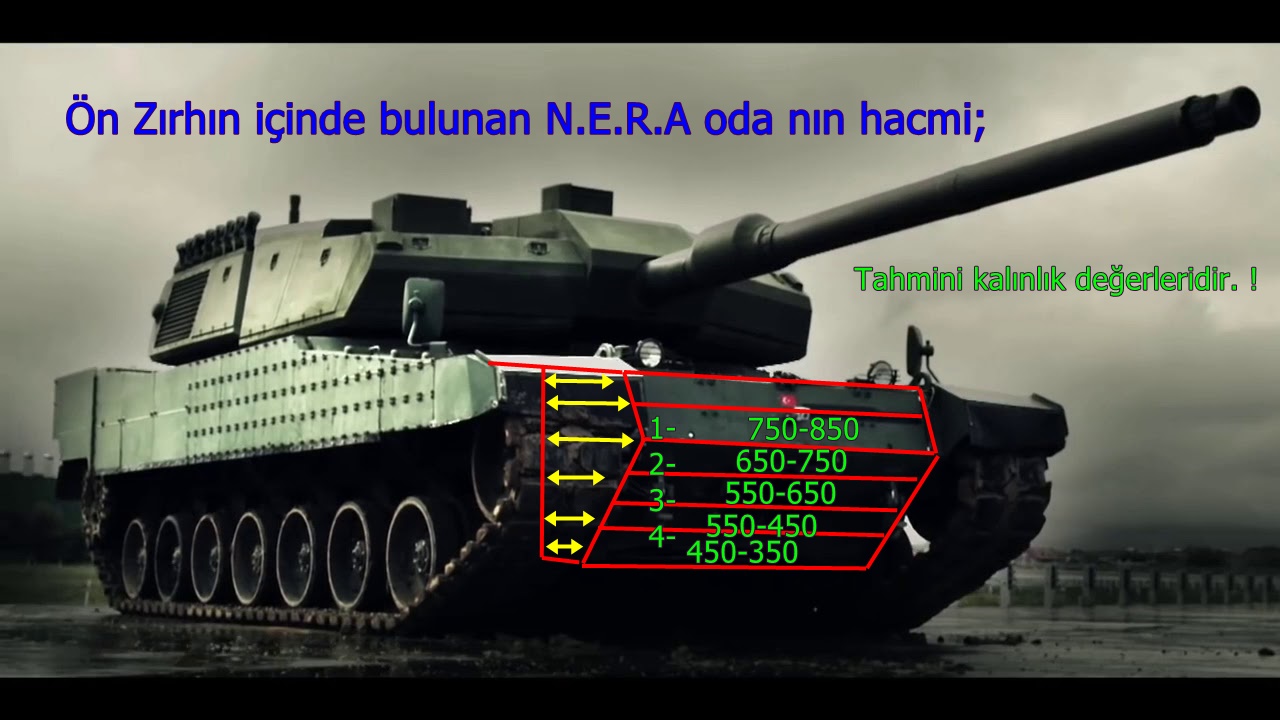 Milli Savunma Bakanlığı veya diğer ülkelerin savunma bakanlıkları hiçbir zaman tankların Zırh kalınlıklarını veya doğru zırh kalınlıklarını vermemektedir. Az sonra tahmini zırh kalınlıklarını ve malzemele dizilişlerini türlerini Vereceğim değerler tahmini değerler olup doğruluğu kanıtlanmamıştır…