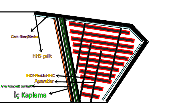 Tankta dikkat çeken özellik zırhıdır Bor Karbür (B4C) Oldukça dayanıklı, Isı direnci yüksek, En iyi Savunma Sanayinin Kullandığı Seramiklerden birisidir fakat. Bor Karbür den daha iyi savunma seramikleri olduğunuda unutmayınız (Silikon Karbür, Grafen, Elmas Nanopartiküller, UO2,) gibi seramikler bor karbür den daha üstündür, diğer yandan Bor karbür kırılgan bir seramiktir. bor karbürün tokluğunun arttırılması için H.İ.P makinesinde tokluğu az bir Seramik ile Kompozit Matris yapılması gerekir Bor karbür + Alumina Harika bir ikili olacaktır ancak bunun maliyetini düşünüp işlem süresini göz önüne alırsak Sadece Bor karbür Mantıklı geliyor.. Merak etmeyin bor karbürü kötülemedim sadece ufak dezavantajlarından ve halka yanlış aşılanan süper güçlü bor karbürün bütün gerçeklerini anlattım…