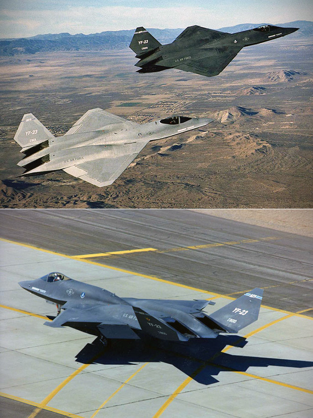 ABD’nin ATF (Advanced Tactical Fighter) yani “gelişmiş taktik avcı uçağı” programı için geliştirilen YF-23, ilk uçuşunu 1990 yılında gerçekleştirmiştir. Bu yaratığın rakibi ise tahmin edeceğiniz üzere Lockheed YF-22 idi. YF-23 hem radar izi bakımından hem hızı bakımından hem de menzil bakımından YF-22’den üstündü. Ancak rakibi kadar çevik değildi. Uçağın baklava şeklindeki kanat yapısı yüksek süratlerde daha az sürtünmeye yol açmasını sağlayıp, V seklindeki kuyruk kanatları ise rakibine göre daha az radar izi olmasını sağlamıştır. “Black Widow” ve “Gray Ghost” takma adına sahipti. Bu uçaklar teknolojiyi o kadar zorluyordu ki firmalar tek başlarına işin içinden çıkamazdı. Bu yüzden YF-23’de Northrop ile McDonnell Douglas; YF-22’de ise Lockheed, Boeing ve General Dynamics ortak çalışıp geliştirmişlerdi. 1991 yılında testler tamamlandıktan sonra Amerikan ordusu kararını YF-22’den yana verdi. Bu tercihin sebebi kesin olarak bilinmese de YF-22’nin YF-23’den daha iyi bir manevra kabiliyetine sahip olmasından ve bakım/maliyet masraflarının daha düşük olmasından kaynaklandığı söyleniyor. Amerikan Donanması, YF-23’ü değerlendirmek istedi ancak bu da iptal oldu. Üretilmiş 2 YF-23 prototipi 2010 yılından beri müzededir.