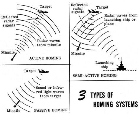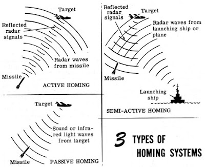 Homing sistemlerinin 3 tanesini gösteren bir şekil aşağıda. Terminal safhada semi-active homing sisteminin nasıl çalıştığını biraz daha iyi göstermiş.